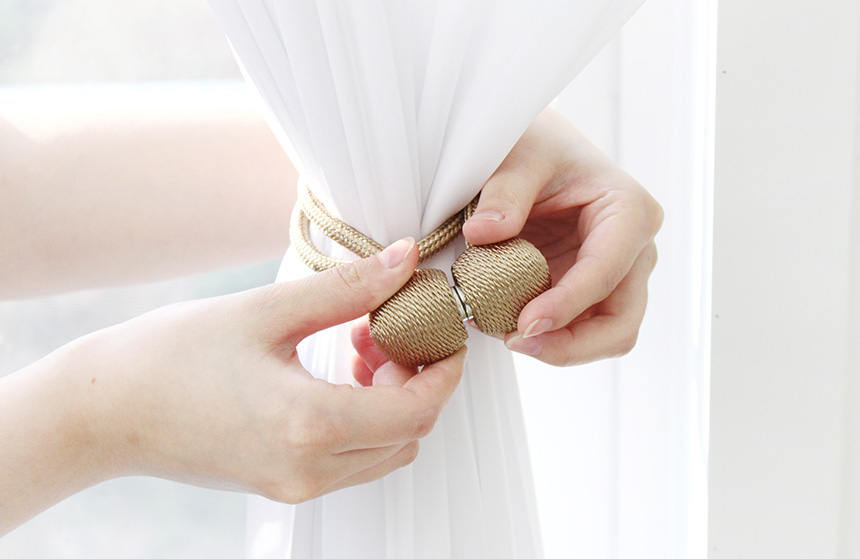 손쉽게 떼고 붙이며 커튼을 정리할 수 있는